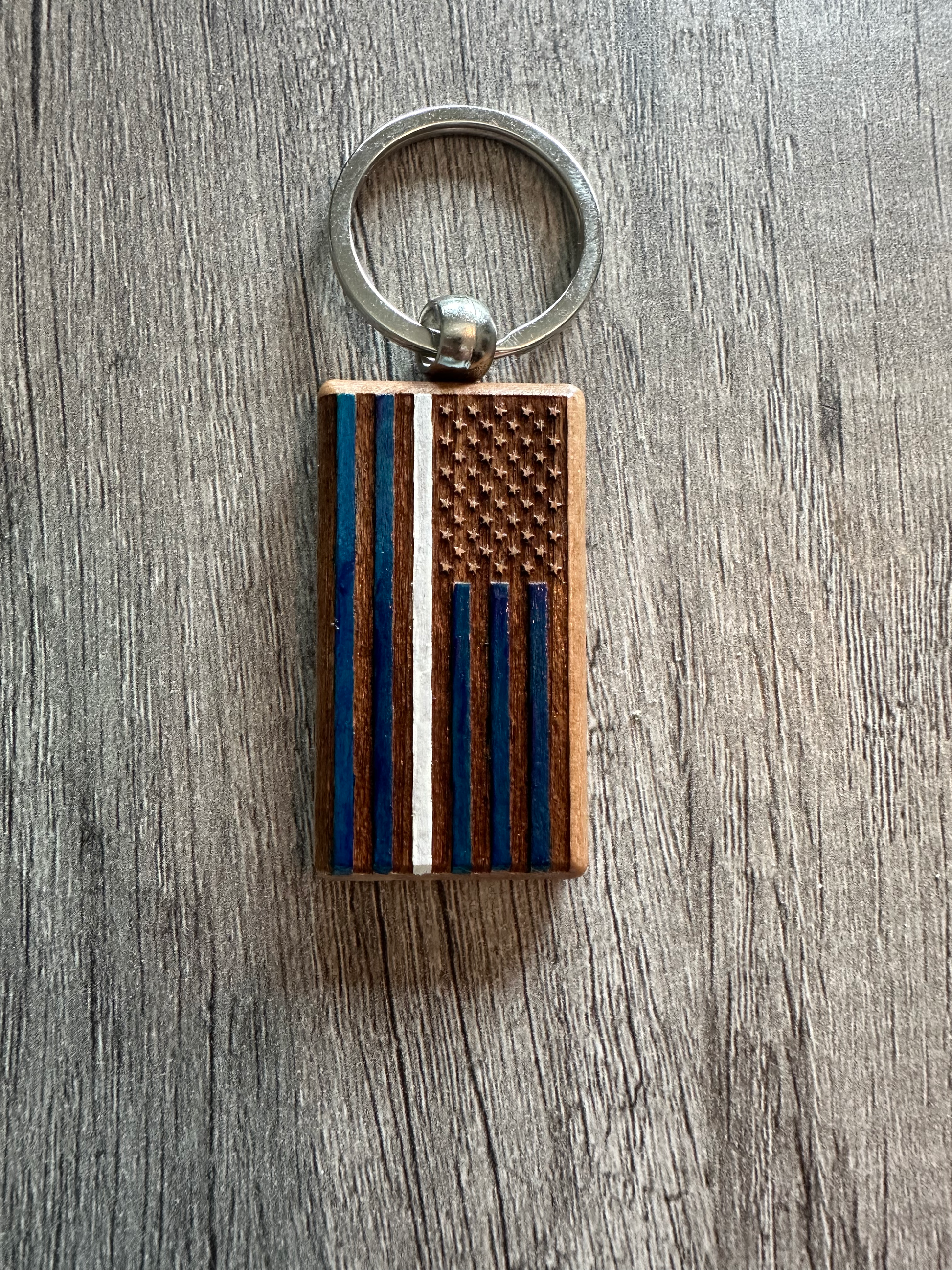 This American Flag Keychain is a heartfelt tribute to patriotism and sacrifice. 🇺🇸 You have the choice between a few beautifully crafted keychains: one featuring a classic American flag, a flag with a blue stripe, a flag with a red stripe, and a flag with blue stripes and one white stripe.