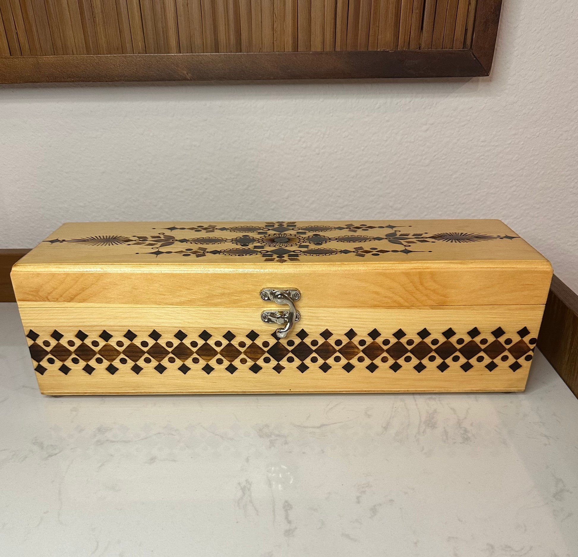 Introducing the Aqua Elegance Box – a captivating blend of artistry and functionality! This wooden box features a stunning hand-burned design on the exterior, showcasing intricate details that make it truly one-of-a-kind.