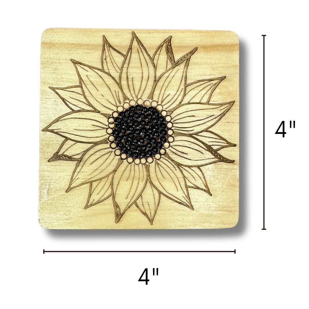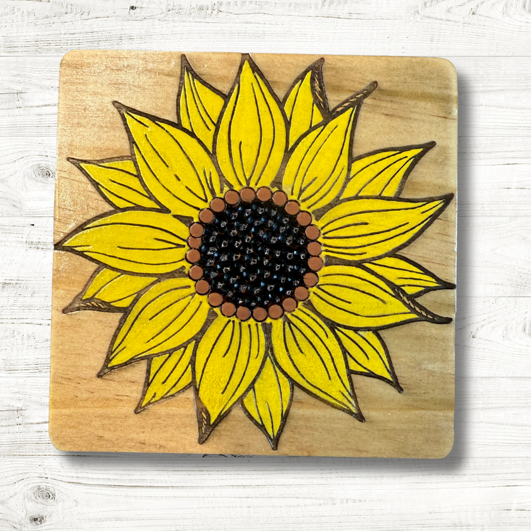 This beautiful Sunflower Coaster Set is a vibrant and cheerful addition to any home! 🌻✨ This set includes four wooden coasters, each featuring a detailed sunflower design that captures the essence of these sunny blooms.